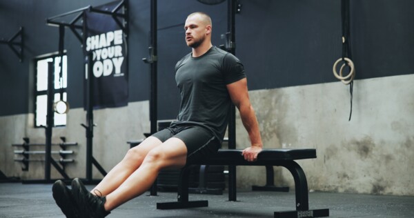 - Bench dips (tricepsové kliky o lavičku): Jednoduchý, ale účinný cvik pro pevné paže.